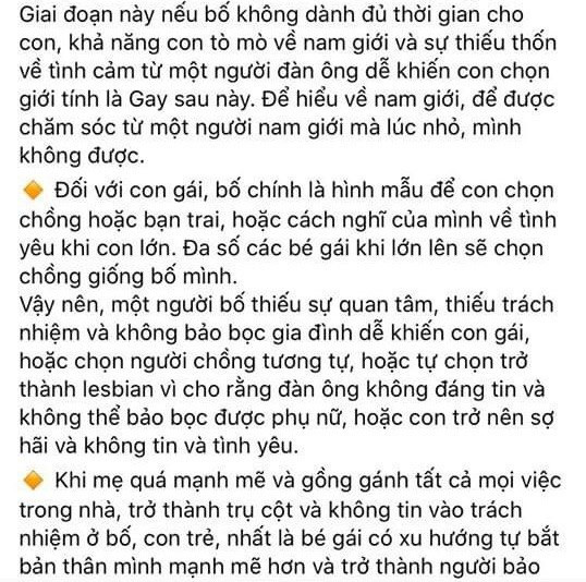 6. "...sự thiếu thốn về tình cảm từ một người đàn ông dễ khiến con chọn giới tính là Gay sau này. Để hiểu về nam giới, để được chăm sóc từ một người nam giới mà lúc nhỏ, mình không được".