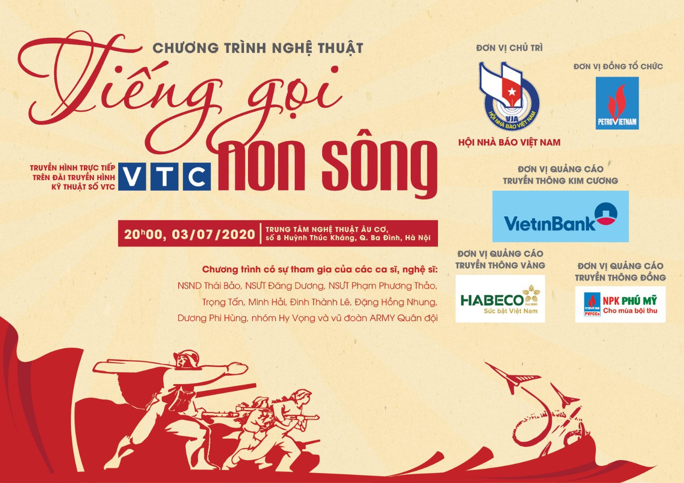 Kỷ niệm 73 năm ngày Thương binh, liệt sĩ (27/07/1947 – 27/07/2020), Hội Nhà báo Việt Nam phối hợp với Tập đoàn Dầu khí Quốc gia Việt Nam cùng một số đơn vị có liên quan tổ chức Chương trình nghệ thuật "Tiếng gọi non sông".