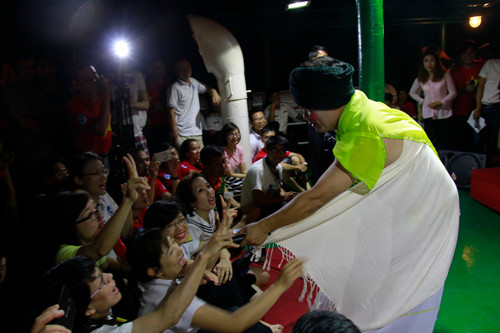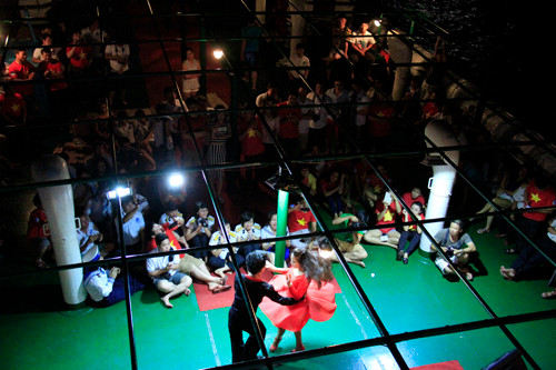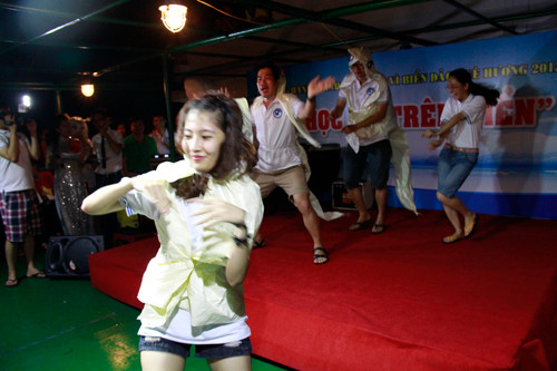 Khán giả hào hứng với tiết mục khiêu vũ của Đội văn nghệ xung kích tỉnh Bình Dương.