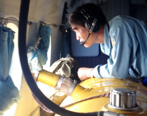 Sau khi tiếp đầy nhiên liệu, trưa 9/3, 2 trực thăng loại Mi 171 ký hiệu 02 và 04 của Trung đoàn 917 thuộc Sư đoàn 370 của Phòng không Không quân Việt Nam nhận lệnh bay ra vùng biển nghi vấn máy bay Malaysia gặp nạn để tìm kiếm.
