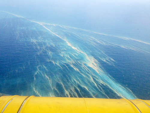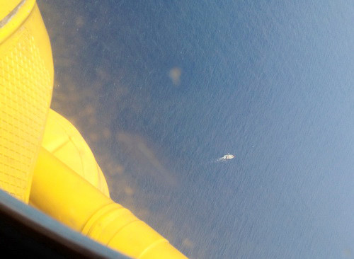 Hình ảnh nhìn từ trực thăng chiều 9/3. Thượng tá Tuấn cho biết đây là bọt biển chứ không phải vết dầu loang.