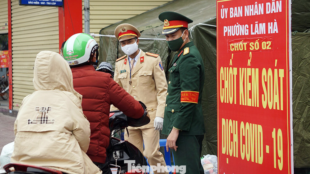 Lực lượng công an, quân đội túc trực 24/24 tại chốt kiểm soát trước bệnh viện, luôn sẵn sàng hỗ trợ người dân khi cần.