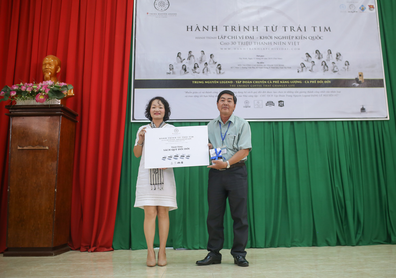 Dịp này, “Hành trình từ Trái tim” đã gửi tặng những cuốn sách quý nằm trong “Tủ sách nền tảng đổi đời” cho hàng trăm học sinh sinh viên tỉnh Tây Ninh ngay tại trường Cao đẳng Sư phạm Tây Ninh; đồng thời cũng mang nhiều đầu sách quý này đến với Thư viện tỉnh để có thể lan tỏa tri thức và khát vọng lớn đến với đông đảo bạn trẻ tỉnh nhà.