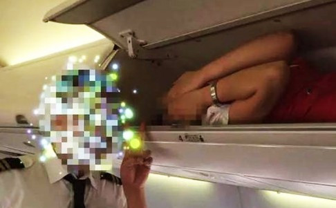 Bức ảnh chụp một nữ tiếp viên bị ép phải nằm trong hộc để hành lý trên máy bay, đã lan truyền nhanh chóng trên mạng xã hội tại Trung Quốc sau khi xuất hiện hồi cuối tuần.