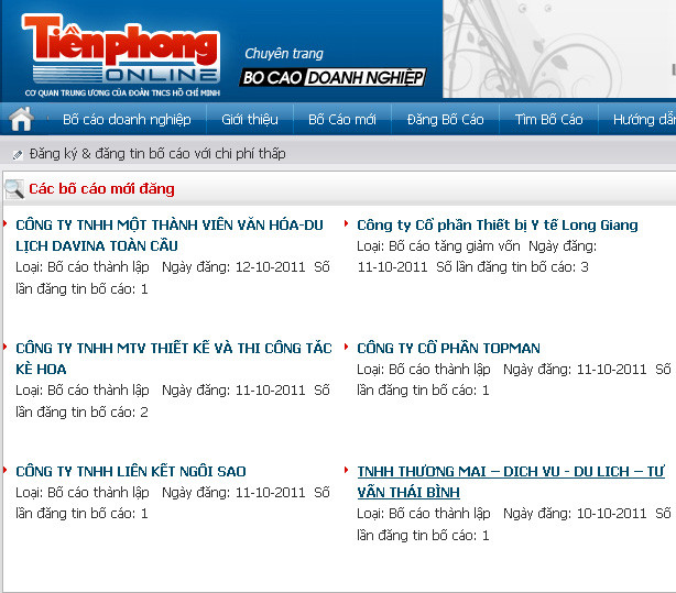 Theo thống kê của TPO, đã có hơn 1.000 doanh nghiệp đăng ký dịch vụ bố cáo doanh nghiệp thông qua chuyên mục, chưa kể nhiều doanh nghiệp sử dụng dịch vụ này để đăng bố cáo thay đổi văn phòng giao dịch, giải thể. Tuy nhiên, so với tỷ lệ cả 100 ngàn doanh nghiệp đăng ký thành lập mới trong năm qua, con số trên còn quá nhỏ.