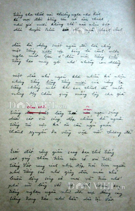 Báo điện tử Dân Việt trân trọng gửi tới bạn đọc bản thảo gốc chép tay bài thơ "Tiếng Việt" của nhà thơ Lưu Quang Vũ do PGS.TS. Lưu Khánh Thơ cung cấp: