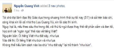 Trước nhiều ý kiến về vấn đề này, PGS.TS. Lưu Khánh Thơ (Viện Văn học) – em gái tác giả Lưu Quang Vũ, người đã biên soạn nhiều tuyển tập thơ, kịch Lưu Quang Vũ và cũng chính là người lưu giữ những bản thảo viết tay của ông đã khẳng định: Đề thi Văn không hề sai.