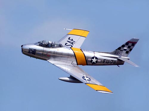 Sau chiến tranh, Mỹ và Liên Xô đều thu giữ các máy bay Me-262 và người Mỹ có F-86 còn Liên Xô có Mig-15 được phát triển dựa trên tham khảo Me-262. Trong ảnh là chiếc F-86 của Mỹ.