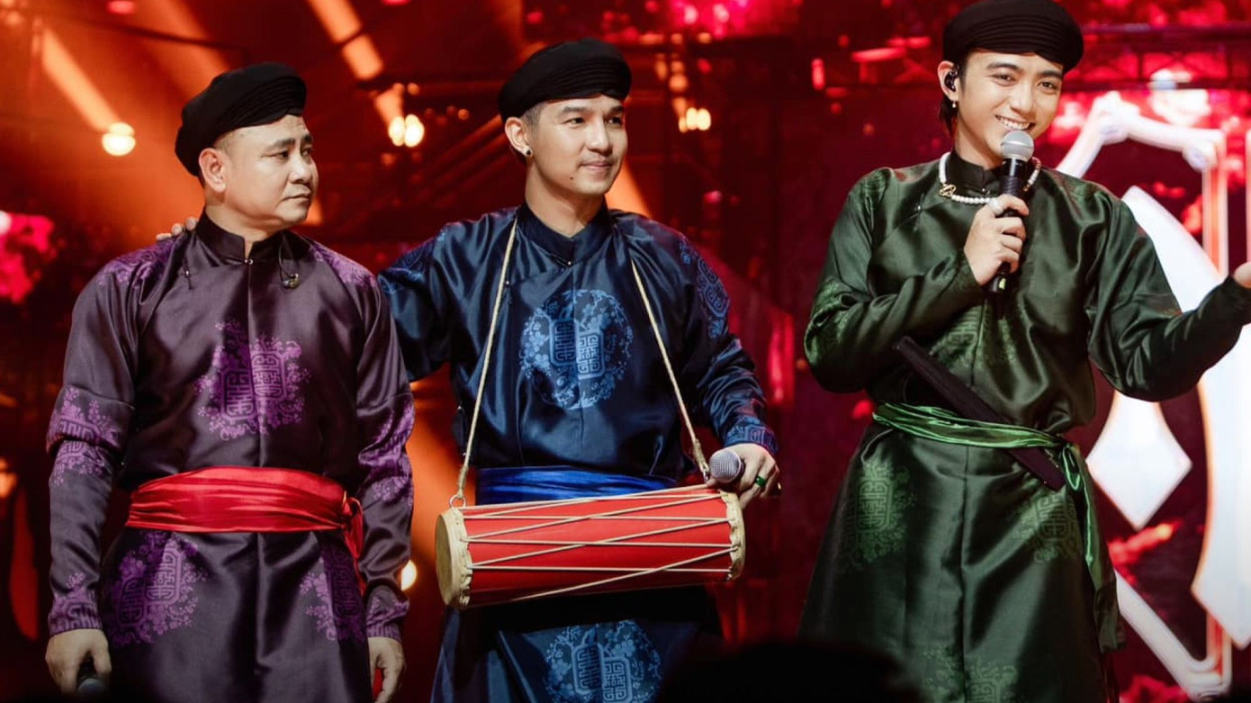 Sân khấu Trống cơm của ba anh tài NSND Tự Long, Cường Seven và Soobin trong chương trình ATVNCG được nhiều học sinh lựa chọn biểu diễn trong lễ khai giảng năm học 2024-2025.