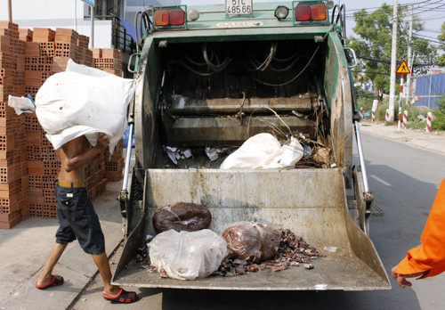 Chiều 10/5, Phòng Y tế quận Thủ Đức phối hợp UBND phường Bình Chiểu tiến hành đưa hơn một tấn me không đảm bảo vệ sinh an toàn thực phẩm ra xe rác, ép thành khối chở về bãi Đa Phước xử lý.