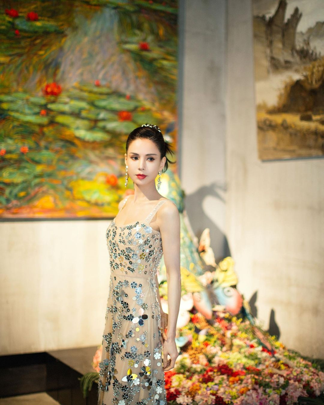 Trong sự kiện gần đây, người đẹp Hồng Kông diện váy hai dây lấp lánh, tôn dáng vóc thanh mảnh và làn da trắng mịn.