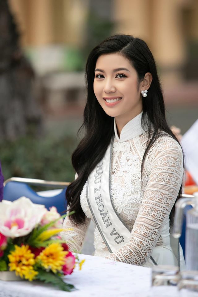 Á hậu Thuý Vân diện áo dài trắng duyên dáng về trường cũ trao học bổng.