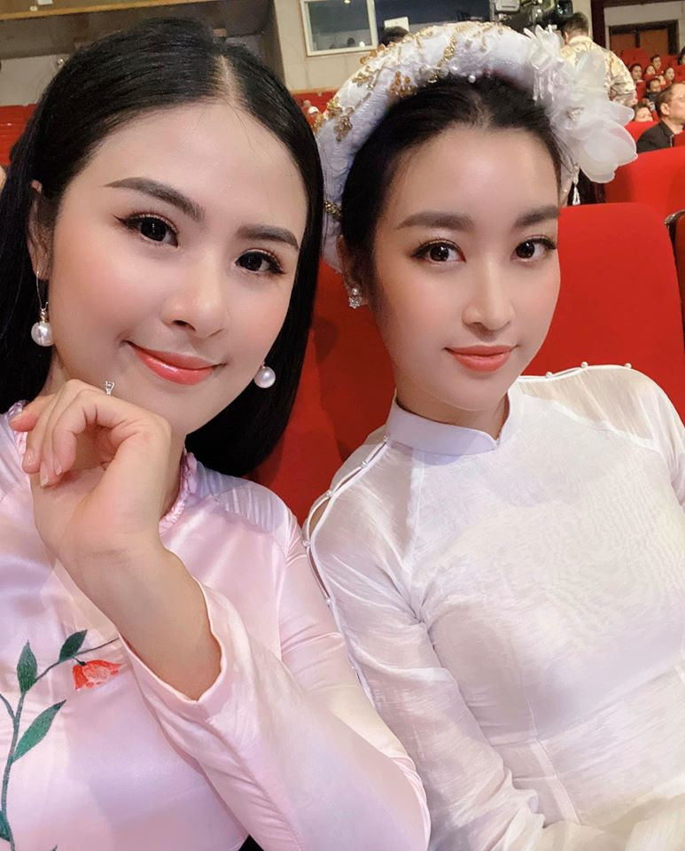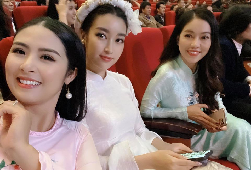 Hoa hậu Ngọc Hân, Đỗ Mỹ Linh khoe sắc trong tà áo dài truyền thống thanh lịch, dịu dàng.