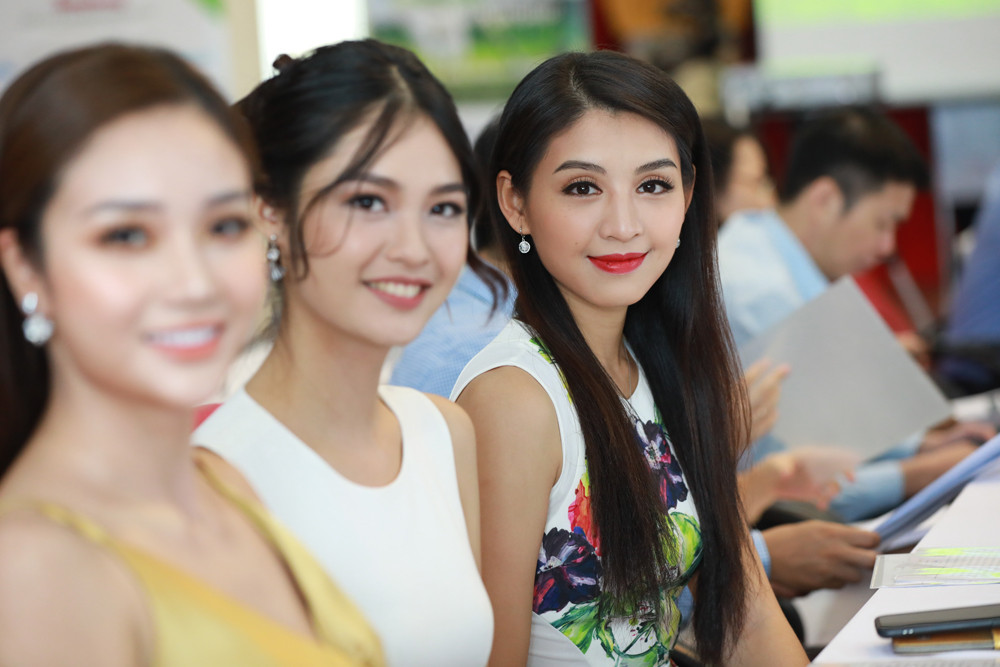 Dàn người đẹp của cuộc thi Miss World Vietnam 2019 cũng diện váy áo gợi cảm tới tham dự buổi họp báo.