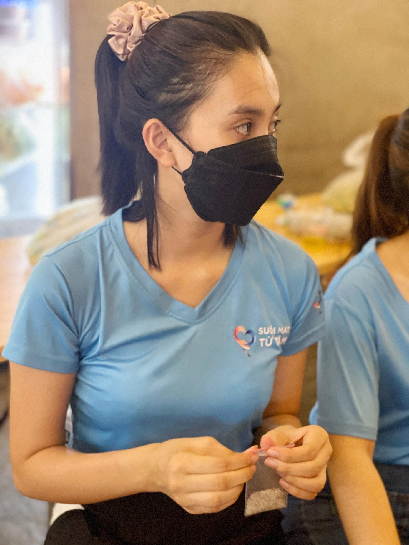 Các người đẹp cùng với nhiều thành viên trong ê-kíp thiện nguyện đã tự tay nấu ăn, phát cơm, trao nhu yếu phẩm cho công nhân thất nghiệp mùa dịch, hỗ trợ các khu cách ly, phong tỏa và các hoàn cảnh khó khăn…