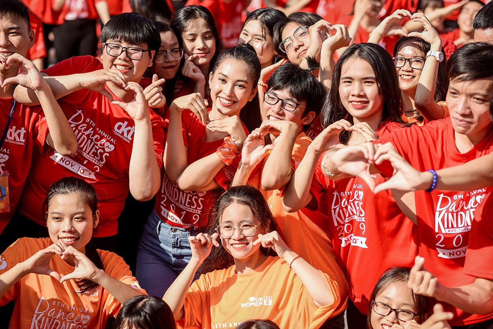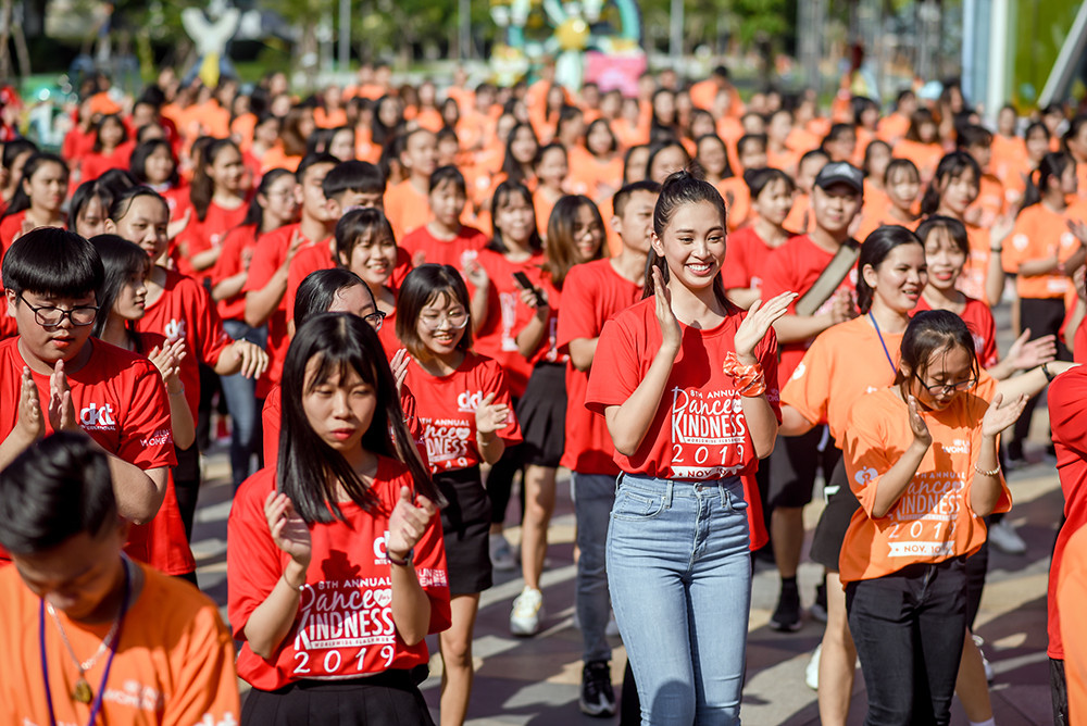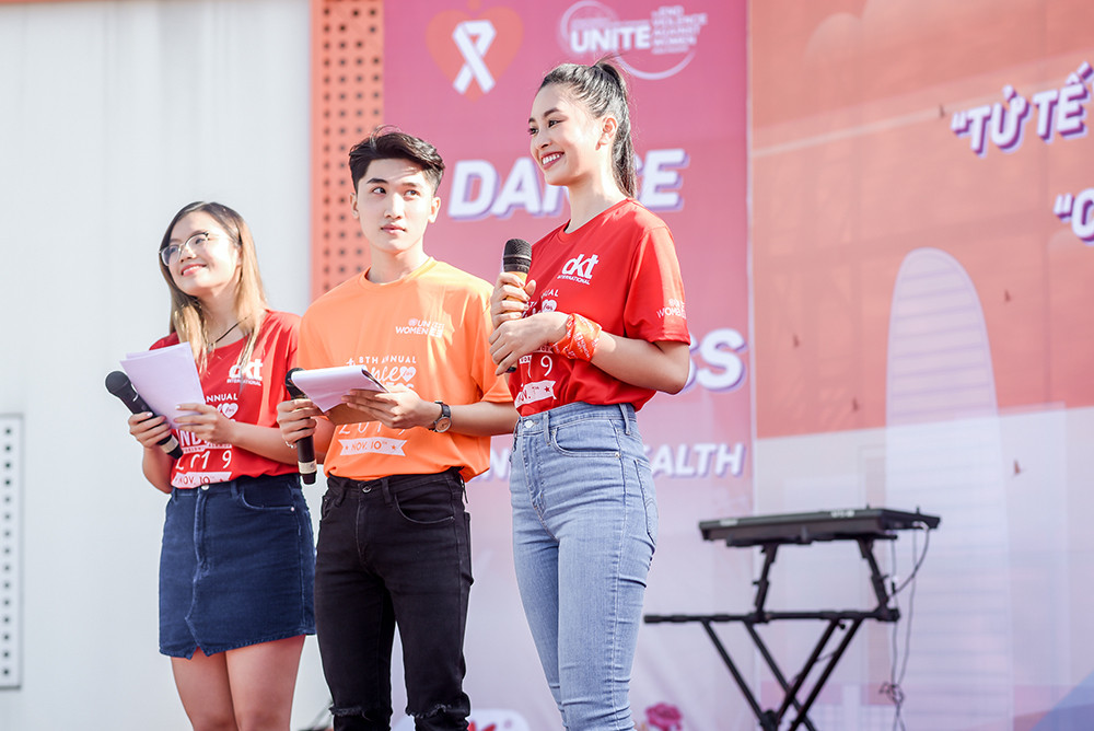 Trong chương trình, Tiểu Vy cùng các bạn học sinh, sinh viên tham gia nhảy flashmob, dân vũ để lan tỏa thông điệp của chương trình năm nay là “Tử tế với sức khỏe – Vì lợi ích của chính bạn và cộng đồng” và “Chấm dứt bạo lực giới – Phòng chống HIV/AIDS”.
