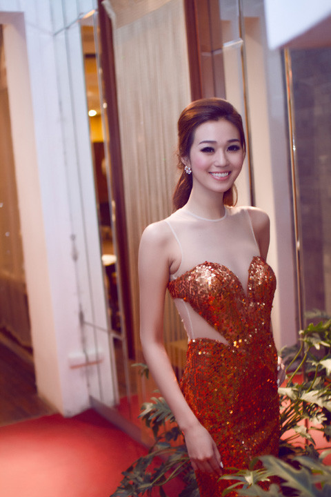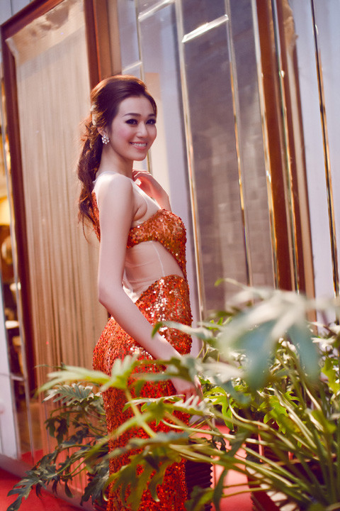 | Phần vải voan hai bên eo giúp người đẹp trở nên gợi cảm trong buổi tiệc đêm. |