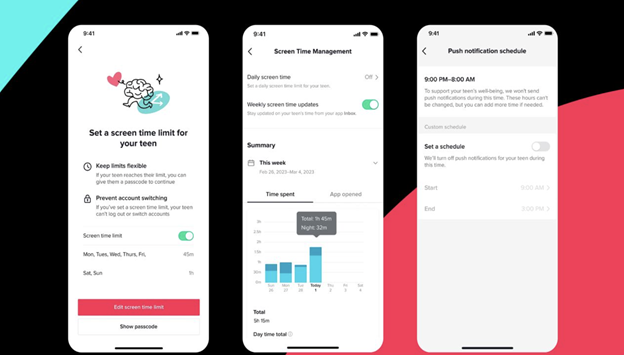 Các nền tảng khác bao gồm Instagram và Snapchat cũng đã triển khai tương tự các tính năng và kiểm soát bổ sung của phụ huynh để khuyến khích thanh thiếu niên nghỉ ngơi và thiết lập ranh giới.