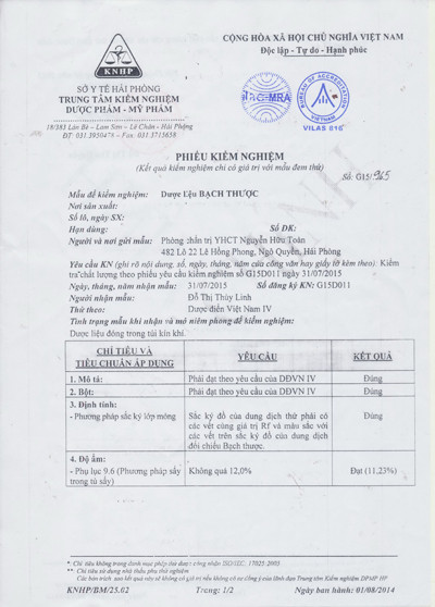 Phòng khám chúng tôi đặt ra một bộ tiêu chuẩn riêng về chất lượng của các vị thuốc gọi là bộ tiêu chuẩn NHT. Các vị thuốc khi đến tay bệnh nhân đều được kiểm định đạt tiêu chuẩn NHT mới được sử dụng để điều trị bệnh. Do đó, những bệnh nhân điều trị tại Phòng khám Đông y Nguyễn Hữu Toàn có thể hoàn toàn yên tâm khi sử dụng thuốc, có thể xem kết quả kiểm nghiệm thuốc chất lượng trước khi sử dụng ”.