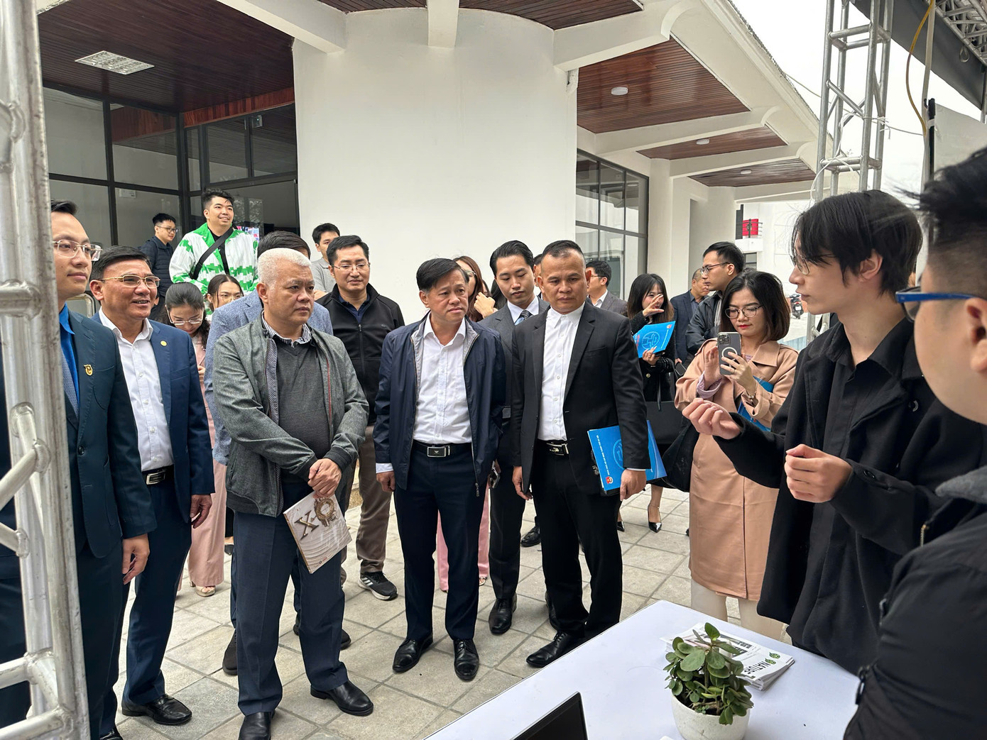 | Ban giám khảo và Ban tổ chức tham quan, tìm hiểu các dự án tranh tài tại vòng chung kết. |