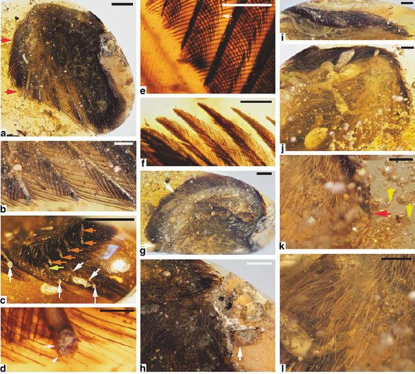 Các nhà khoa học cho biết những chiếc cánh này thuộc về hai chú khủng long con thuộc loài Enantiornithes – một loài khủng long có răng và cánh cùng móng vuốt. Dựa trên dấu móng vuốt in trên miếng hổ phách, các nhà nghiên cứu đưa ra giả thiết rằng dường như những chú khủng long con này đã mắc kẹt trong nhựa cây và cố vẫy vùng để thoát ra nhưng không thành.