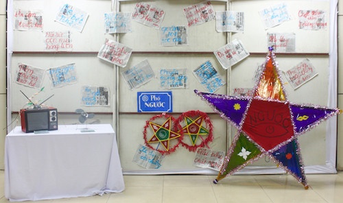 Bằng bàn tay “ma thuật” và tài thiên biến vạn hóa, các bạn trẻ của NGƯỚC Project đã tái hiện nhiều vật dụng thời bao cấp từ những món đồ tái chế như báo cũ, cốc nhựa, ống hút...