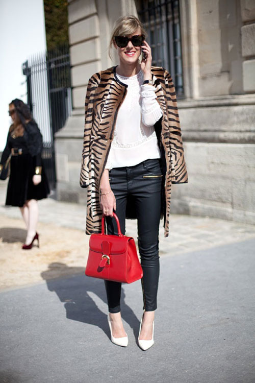 Nét thanh lịch của quý cô mùa đông khi khoác trên tay chiếc túi xách họa tiết ngựa vằn