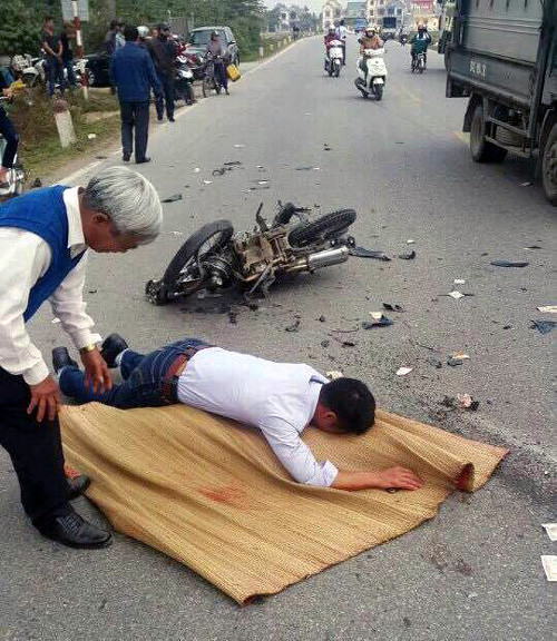 Cú va chạm mạnh khiến anh B. bị văng ra khỏi xe, nằm bất động, chiếc xe máy hư hỏng nặng. Sau khi vụ tai nạn xảy ra, nhiều người dân chạy đến thấy anh B. nằm bất động, tưởng anh đã chết nên đã nhanh chóng báo tin cho người nhà, đồng thời lấy chiếu đắp lên người nạn nhân. Nhận được tin báo, người nhà nạn nhân ra hiện trường kêu khóc thảm thiết. Người nhà anh B. còn mang cả cơm cúng ra đặt. Nhiều người đi đường thấy tai nạn đã vứt tiền lẻ xuống.