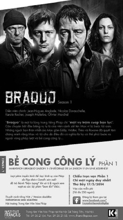 * Chiếu 8 tập phim “Bẻ cong công lý” trong ngày duy nhất 17/5 tại Trung tâm Văn hóa Pháp 24 Tràng Tiền Hà Nội từ 13h30 đến 22h. 8 tập này thuộc phần 1 bộ phim truyền hình thể loại hình sự do tập đoàn Canal+ sản xuất. Khi ra mắt năm 2009, phim đạt tỉ lệ người xem rất cao. Ngoài xem phim miễn phí, khán giả có cơ hội nhận quà của Truyền hình K+ nhân sinh nhật tuổi thứ 5 của đơn vị này.