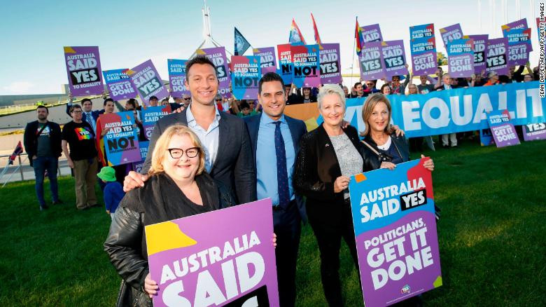 Được biết trước đó, trong một cuộc thăm dò trưng cầu dân ý kéo dài 2 tháng, có tới 61% trong tổng số 12 triệu người dân Úc được hỏi ủng hộ hôn nhân đồng giới. Cũng với kết quả này, tổ chức nghiên cứu Pew cho biết Úc chính thức trở thành nước thứ 24 trên thế giới cho phép các cặp đồng tính kết hôn. Tuy nhiên, những đám cưới đồng tính đầu tiên tại Úc sẽ không được công nhận ít nhất là cho đến tháng 1/2018, sau khi các cặp vợ chồng đồng giới đã thông báo đầy đủ về ý định lập gia đình của họ.