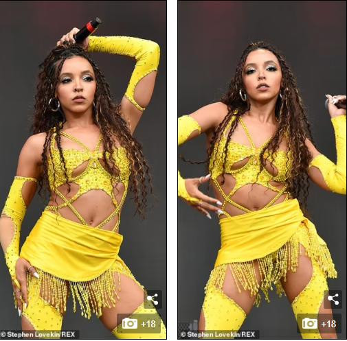 Tinashe sở hữu vẻ đẹp hoang dại cực "bốc lửa" với mái tóc xoăn xù, gương mặt với những đường nét xinh đẹp và body nóng bỏng nảy nở dù chỉ cao 1m65. Cô quyến rũ nổi bật, biểu diễn hết mình trên sân khấu.