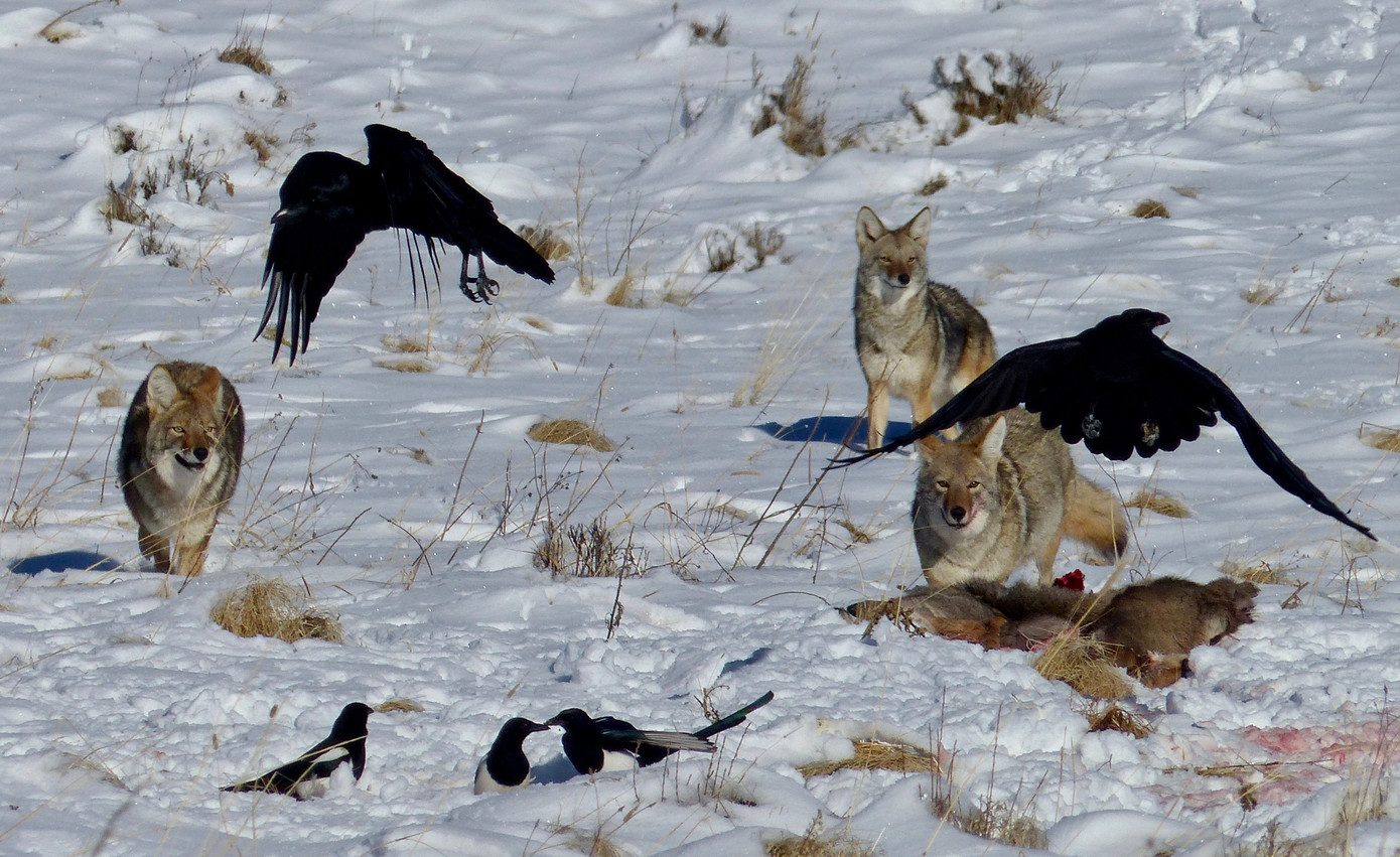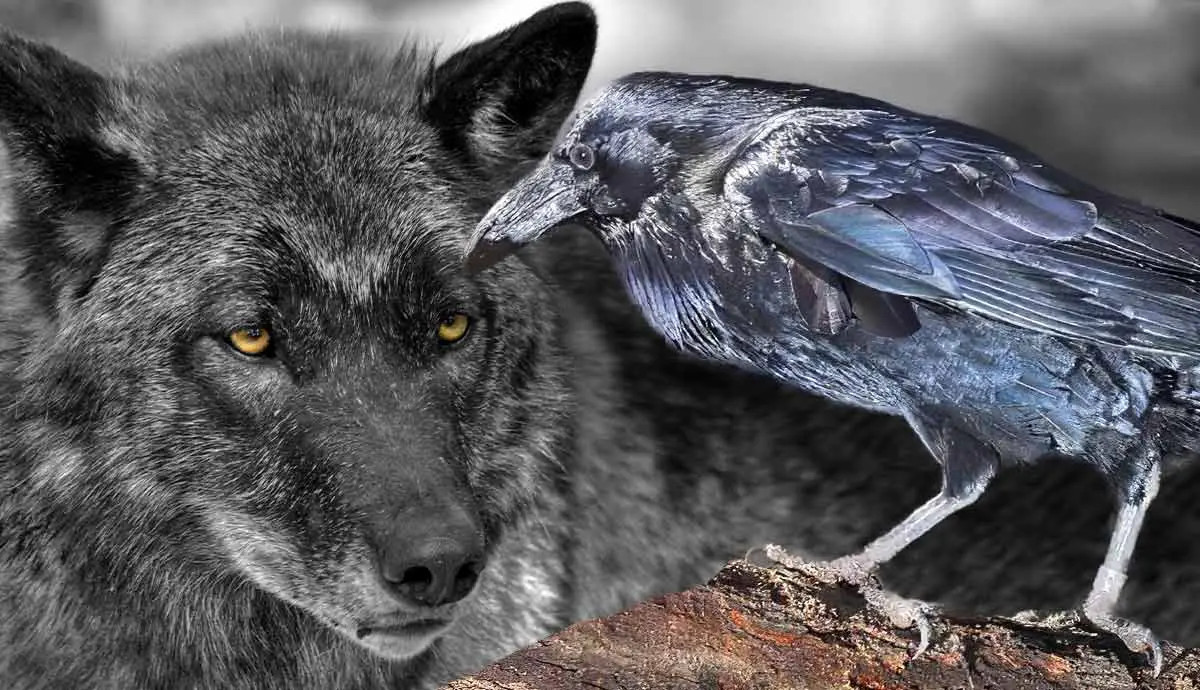 Quạ với thị lực nhạy bén và khả năng bay lặng lẽ, chúng là những kẻ săn mồi lành nghề nhưng lại không thể tự mình xé da của những con vật lớn. Vì vậy, quạ đã tìm kiếm một đồng minh để giúp chúng làm việc đó. Nó đã chọn loài sói để bọn này xử lí hộ những phần công việc quạ không thể làm.