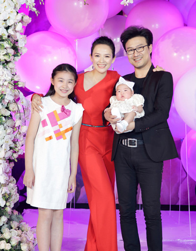 Con gái của Cát Hội Tiệp (trái) bên bố và mẹ kế - Chương Tử Di.