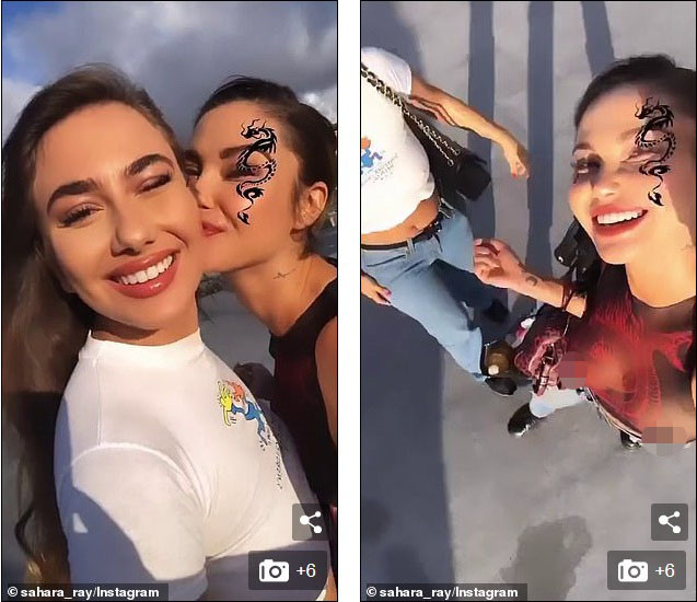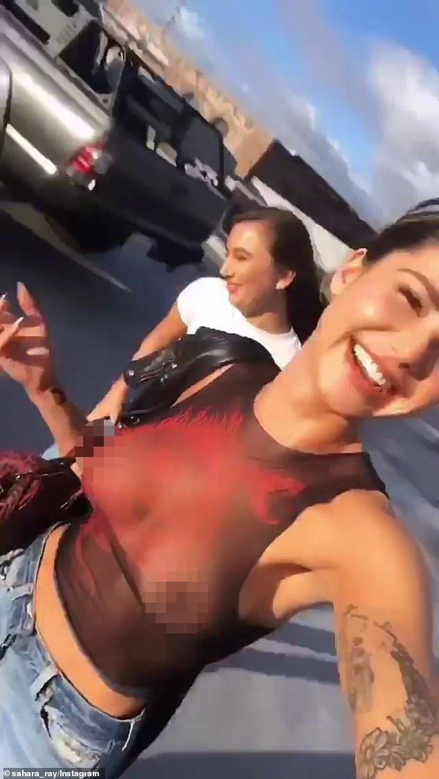 Trong video mới được chia sẻ trên Instagram Story, Sahara Ray đùa giỡn với cô bạn tại bãi đỗ xe. Đáng chú ý, người mẫu 9x mặc áo crop-top mỏng tang, lộ trọn vẹn vòng một gây sốc.
