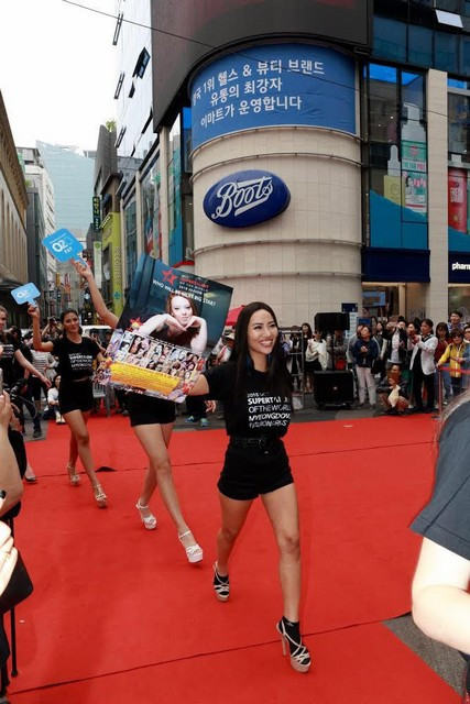 Vào chiều 5/5, tại đường băng dài 140 mét trải dài 4 con phố sầm uất của trung tâm giải trí Myeung-dong, người đẹp đã tự tin thể hiện ca khúc Talk to me của Chi Pu trước 3000 khán giả.