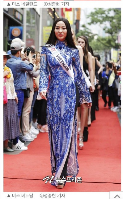 Người đẹp luôn biết cách tạo ấn tượng khi đến với Miss Super Talent 2018 khi thân thiện bắt chuyện và gặp gỡ với hơn 30 người đẹp tại cuộc thi. Hình ảnh Kiko Chan mặc áo dài hoạ tiết độc đáo xuất hiện trên báo Hàn.