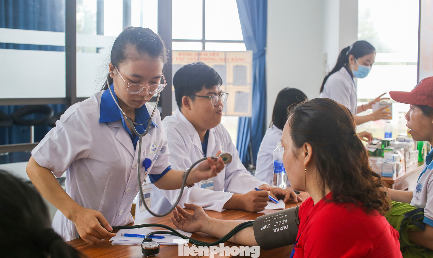 | Tổ chức khám bệnh, cấp phát thuốc miễn phí cho thanh niên công nhân. Ảnh: Trương Định |