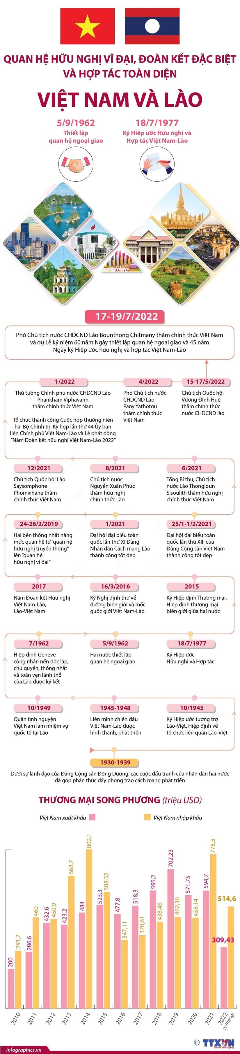 Hai dân tộc Lào và Việt Nam đã sớm có quan hệ láng giềng tốt đẹp từ xa xưa, nhân dân hai nước cùng làm ăn, sinh sống dưới dãy Trường Sơn hùng vĩ và bên những dòng sông trải dài từ Bắc chí Nam, đoàn kết yêu thương đùm bọc lẫn nhau như anh chị em một nhà, cùng chia ngọt sẻ bùi, vui buồn có nhau. Và mối quan hệ tốt đẹp này đã được thử thách trong quá trình đấu tranh trường kỳ gian khổ chống lại quân xâm lược, khi hai dân tộc Lào và Việt Nam nương tựa vào nhau, giúp đỡ lẫn nhau trên tinh thần quốc tế vô tư trong sáng, hết sức hết lòng, yêu thương tin tưởng lẫn nhau, sẵn sàng hy sinh vì nhau, sống chết có nhau. Đó là nguồn gốc của tình đoàn kết đặc biệt, là nhu cầu khách quan và là nhân tố quyết định thành công và thắng lợi của cách mạng hai nước chúng ta, là hình mẫu hiếm có, duy nhất trên thế giới. Đó là mối quan hệ vĩ đại, sâu sắc, trân quý và là tài sản quý báu của hai dân tộc Lào - Việt Nam.