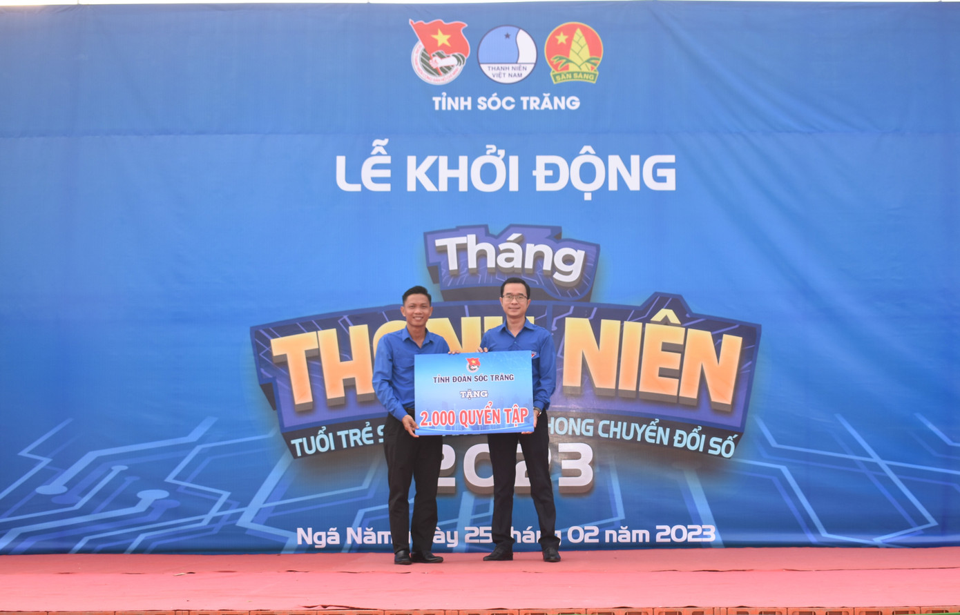 Tại buổi lễ, Ban Thường vụ Tỉnh đoàn đã trao tặng các nguồn lực gần 500 triệu đồng để triển khai các hoạt động gồm: tặng 1 căn nhà cho thanh niên có hoàn cảnh khó khăn huyện Châu Thành, 60 suất học bổng cho các em học sinh vượt khó học tốt thị xã Ngã Năm, 2.000 quyển tập cho Hội đồng Đội thị xã Ngã Năm, công trình trồng 1.000 cây xanh tại thị xã Ngã Năm.