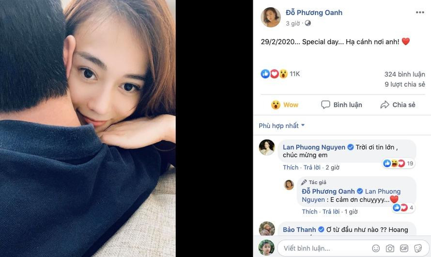 Phương Oanh công khai người yêu thứ ba đúng ngày phụ nữ tỏ tình 29/2/2020. Cô chia sẻ mình đã trúng “tiếng sét ái tình” với bạn trai hơn cô 2 tuổi, làm ngành khoáng sản. Đây là người hội tụ đầy đủ những yếu tố cô cần và luôn cảm thấy an toàn, ấm áp khi ở bên.