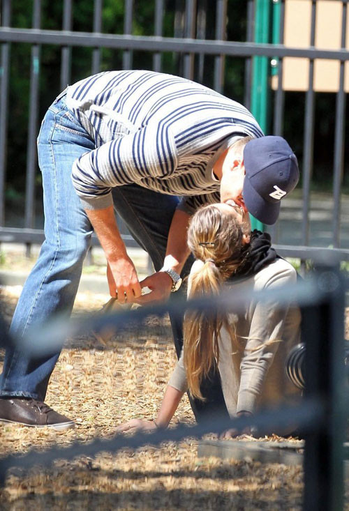 Vợ chồng Gisele không thể ngừng hôn nhau khi đi chơi công viên, tháng 6/2012.