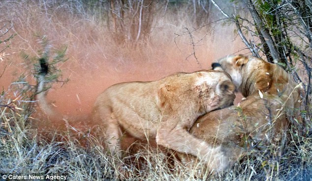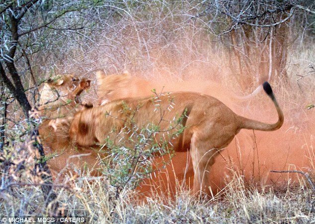 TPO – Qua ống kính của nhiếp ảnh gia Michael Moss, những khoảnh khắc tuyệt vời của hai bà mẹ sư tử chiến đấu để bảo vệ đàn con của mình trong khu bảo tồn Madikwe, Nam Phi được ghi lại.