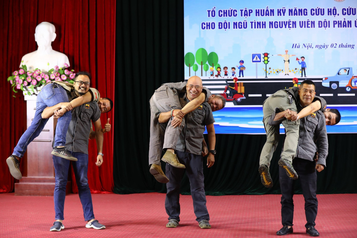 Trong khuôn khổ chương trình, báo cáo viên sẽ tập huấn các kiến thức về cứu nạn đường bộ cho các tình nguyện viên tại hội trường. Tiếp đó, các tình nguyện viên sẽ được tập huấn thực tiễn công tác phòng cháy chữa cháy trên cạn, cứu nạn người bị đuối nước và diễn tập phòng cháy chữa cháy đường thủy tại Bãi Nhãn Sông Hồng (Bãi Nhãn, 102 Thạch Cầu, Long Biên, Hà Nội).