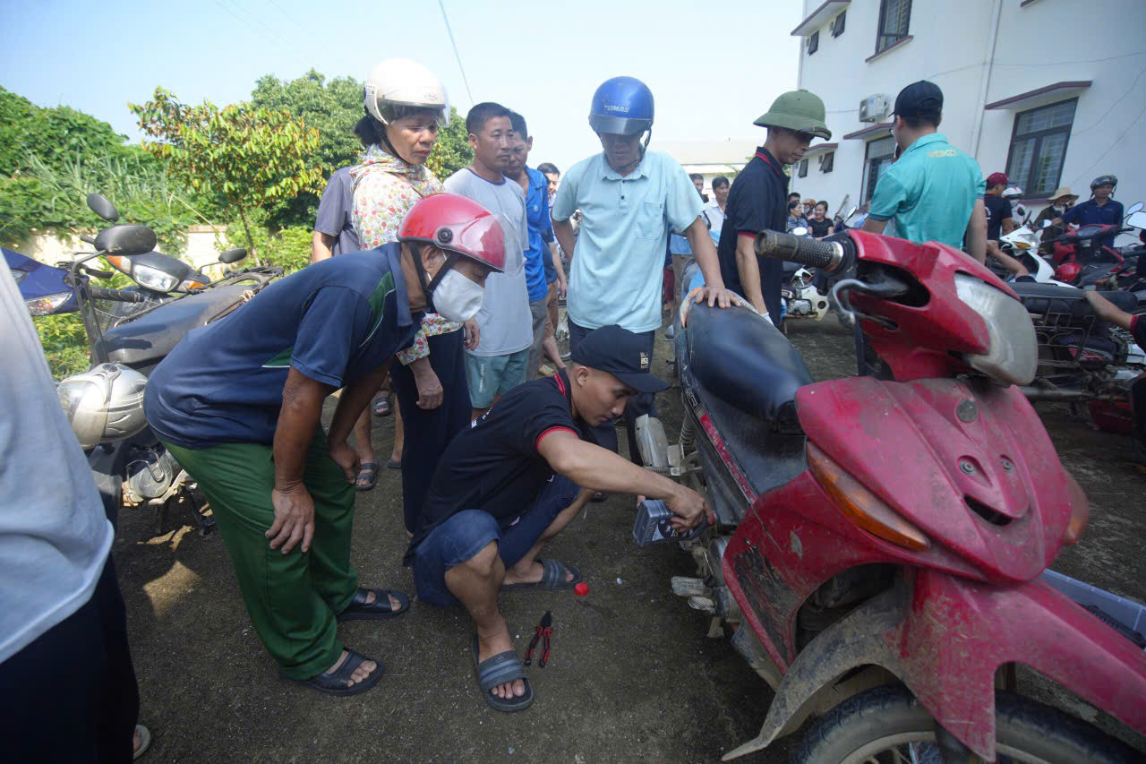 | Rất đông người dân mang xe máy đến các điểm sửa xe miễn phí. |