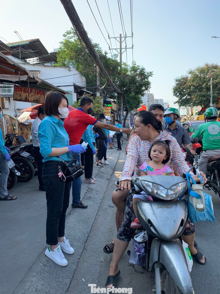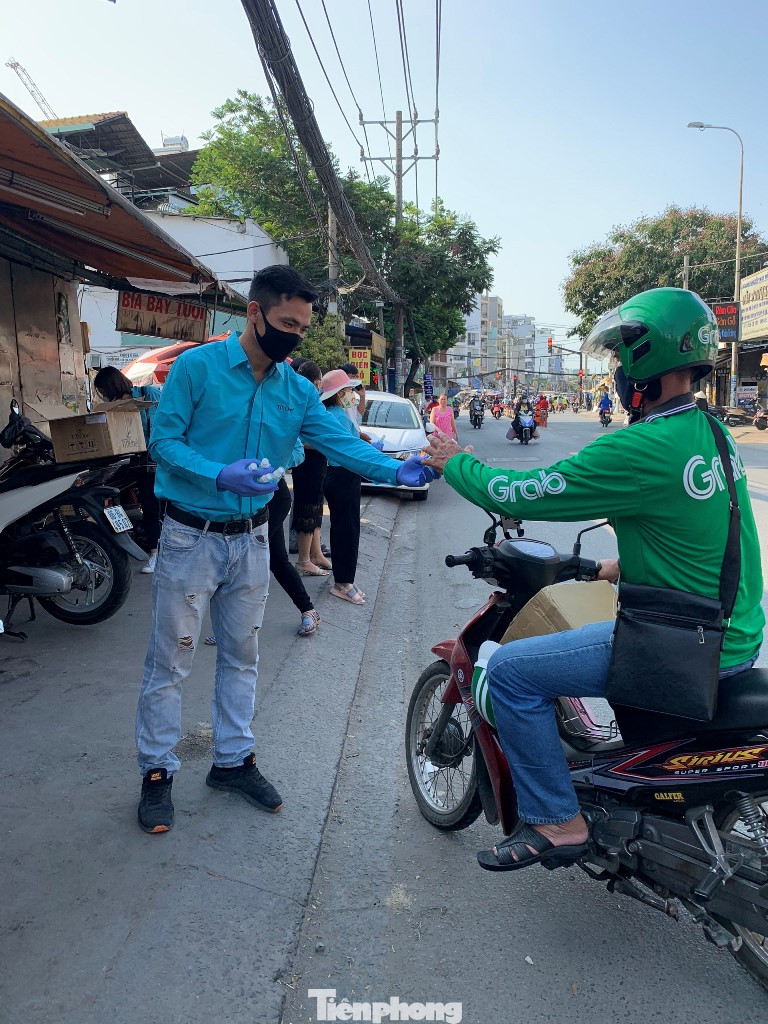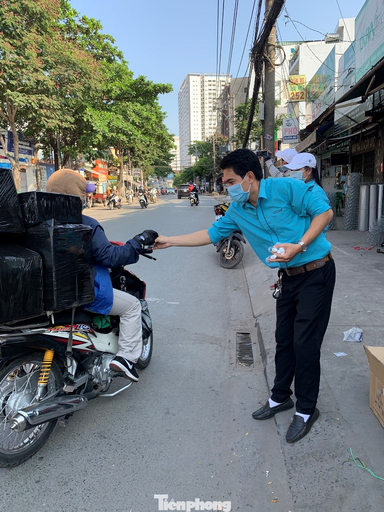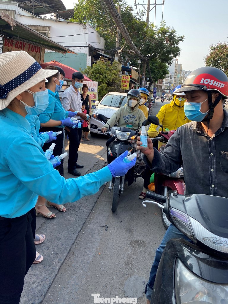 Chiều ngày 26/3, nhiều người đi đường ở khu vực Nguyễn Xí - Nơ Trang Long, gần Bến xe Miền Đông, quận Bình Thạnh ngạc nhiên và vui mừng khi được tặng nước rửa tay miễn phí. Đây là sản phẩm của công ty mỹ phẩm TiTiOne nhằm giúp người dân có thêm sản phẩm bảo vệ trong dịch COVID-19.