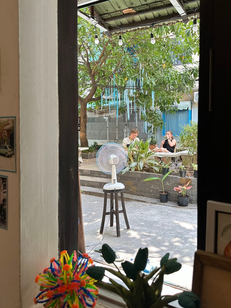 Dù chỉ có mấy cây quạt từ những ngày đầu mở quán đến nay, Giêng vẫn được “người nhà” thương mến bỏ qua điểm trừ đó. Vì quán được bao quanh bởi cây cối rợp bóng, mát dịu như một chiếc tổ nhỏ nép mình giữa những tán cây lớn.