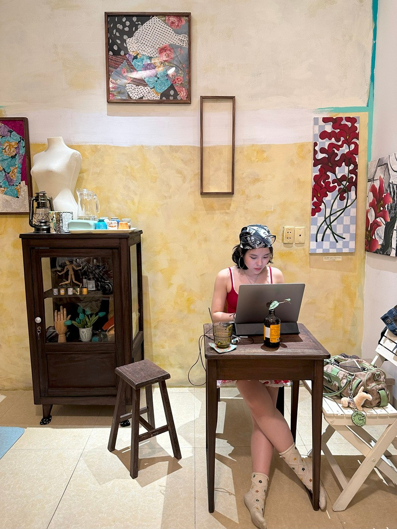 Đặc điểm nhận diện “quán cà phê mang văn hoá Indie” mà cư-dân-Threads truyền tai nhau về Giêng, không chỉ đến từ một không gian đầy sắc màu “bất quy tắc”, mà còn là cách mặc đồ đậm chất local của nhân viên quán và cả những vị khách mang vibe Indie.