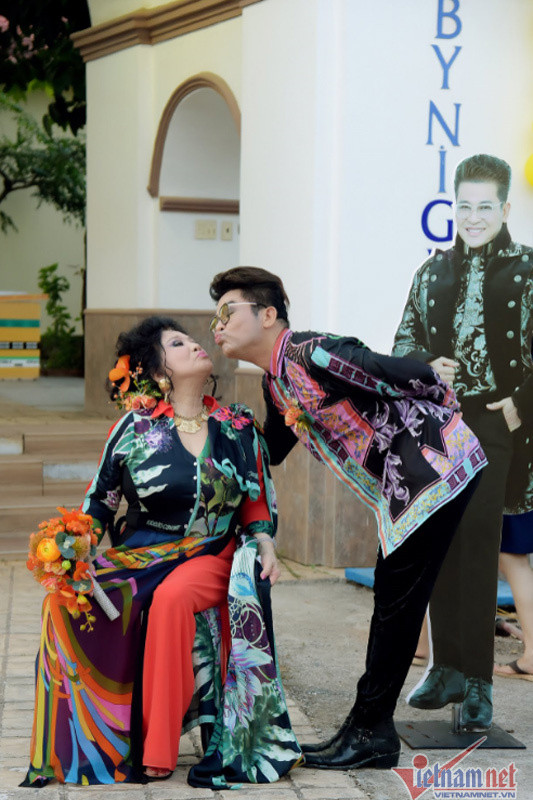 Cặp đôi trao nụ hôn bên poster của MC Thanh Bạch.
