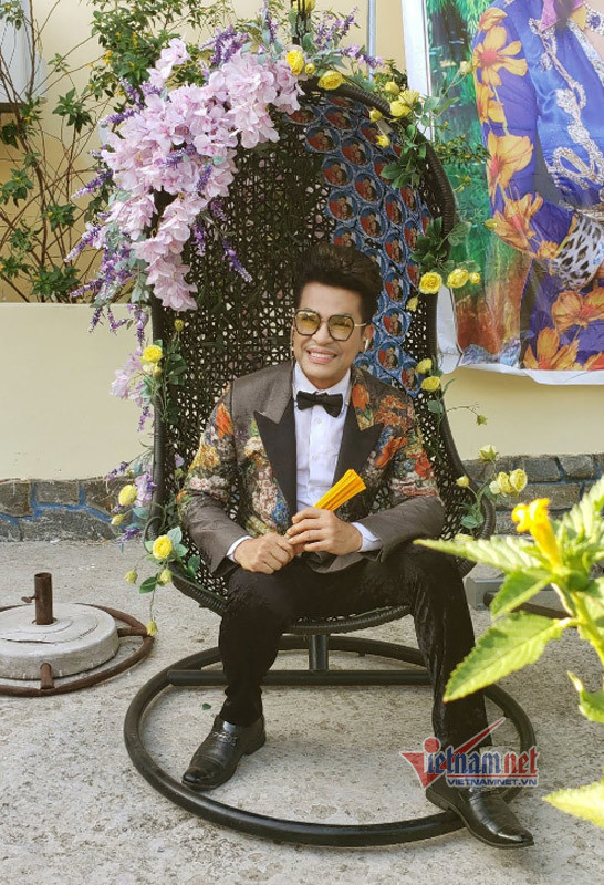 MC Thanh Bạch với chiếc ghế kết hoa đặt một góc trong khu nhà.