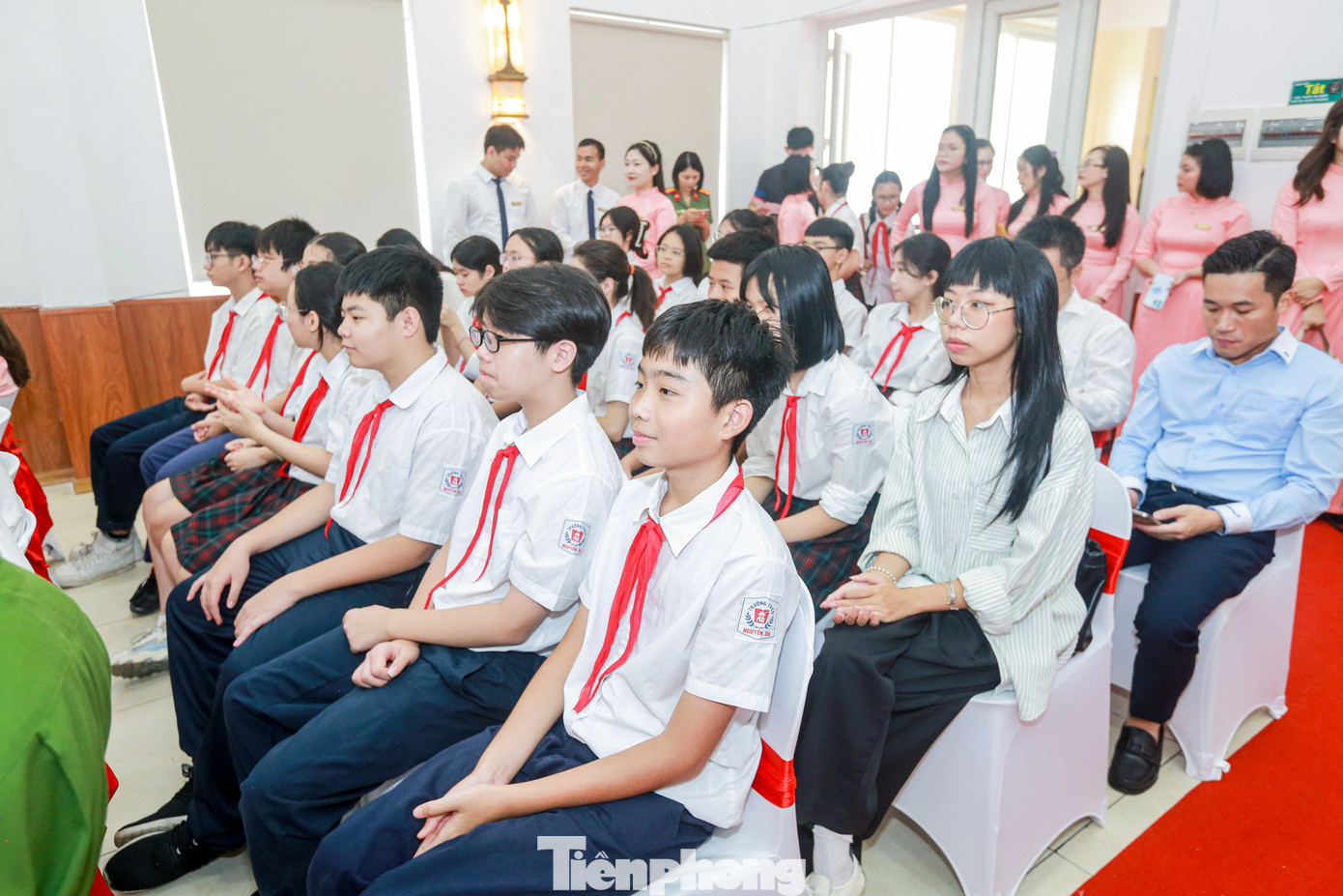 Ông Phạm Tuấn Long, Chủ tịch UBND quận Hoàn Kiếm biểu dương sự nỗ lực của thầy cô, học sinh Trường THCS Nguyễn Du, sự quan tâm của các cấp ủy Đảng, Chính quyền phường Hàng Gai.